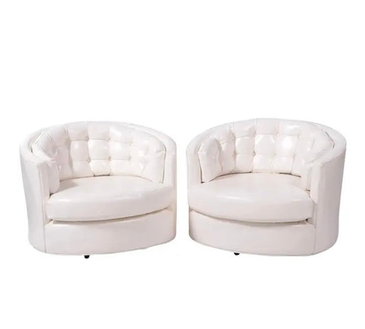 SOLD Modern White Tufted Faux Leather Tub Chairs