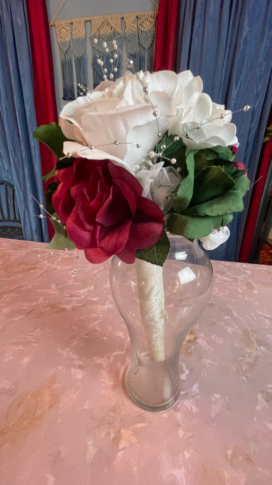 RENTAL FLOWERS BRIDAL BOUQUET RED WHITE BURGUNDY
