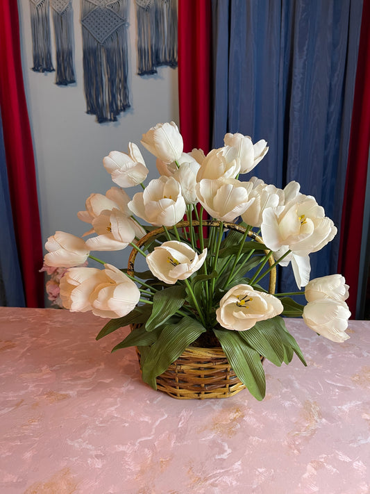 FLORAL RENTAL FLOWERS WHITE TULIPS BASKET WEDDING