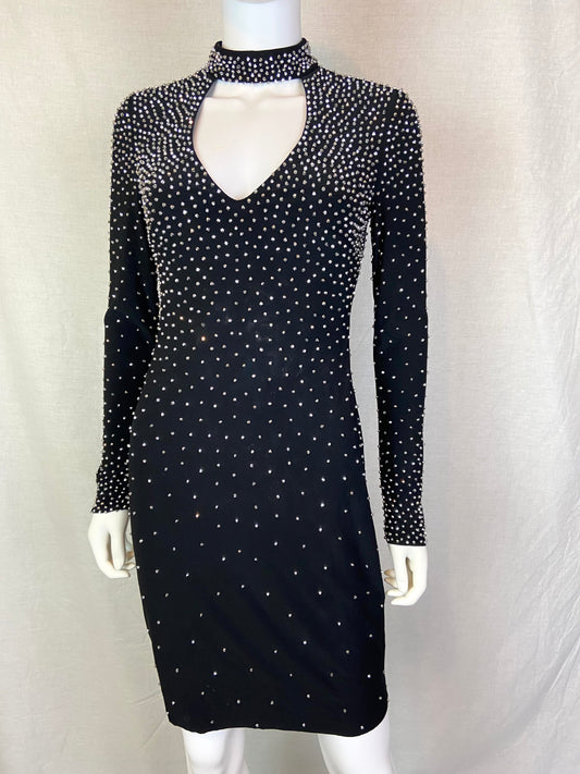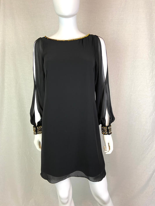 IN San Francisco Black Gold Beaded Sheer Dress Medium