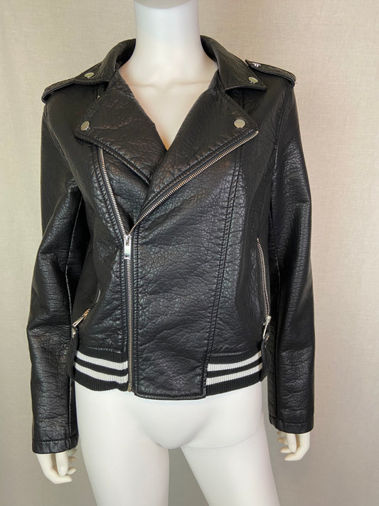 Black Faux Leather Motorcycle Jacket JR L