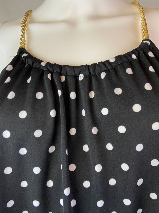 First Love Black White Polka Dot Gold Chain Tank Top NWT