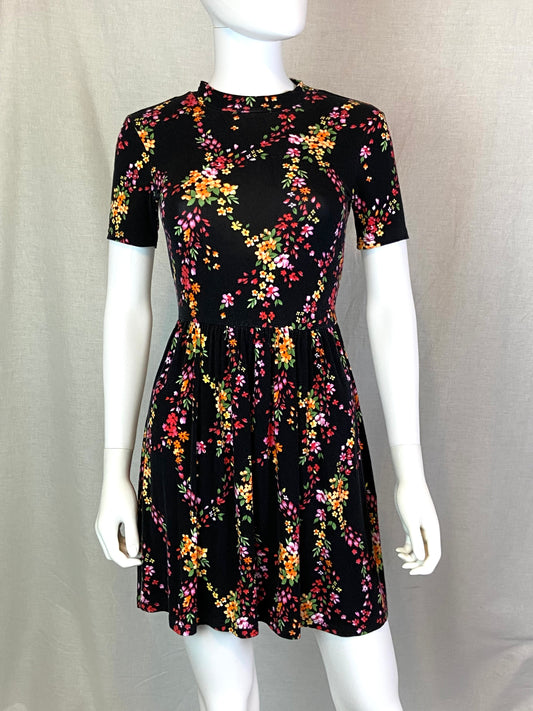 Forever 21 Black Floral Open Back Dress Small