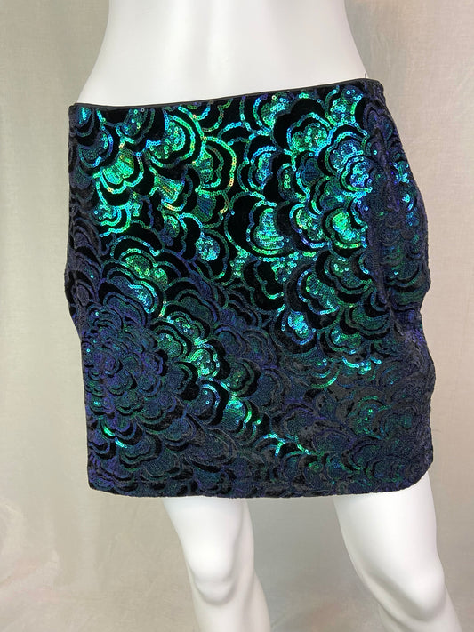 Green Black Mermaid Sequin Mini Skirt M