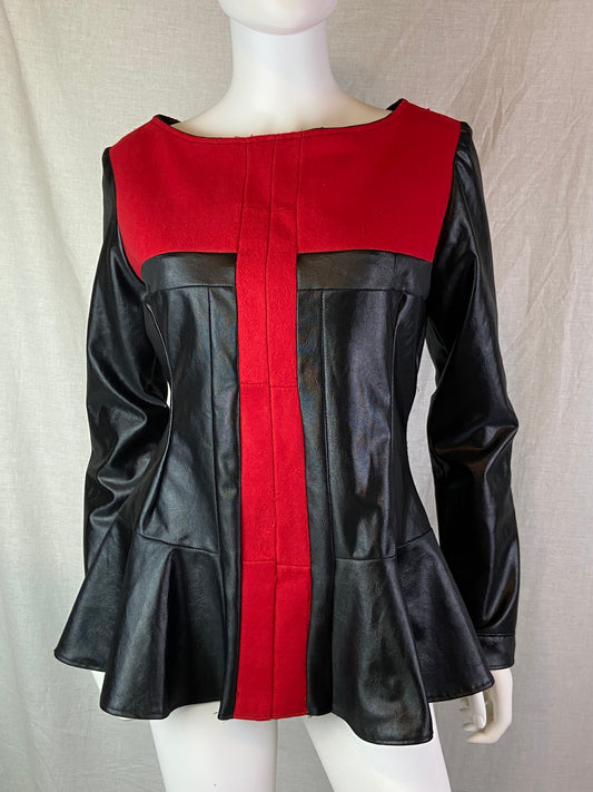 Custom Red Wool Black Faux Leather Top