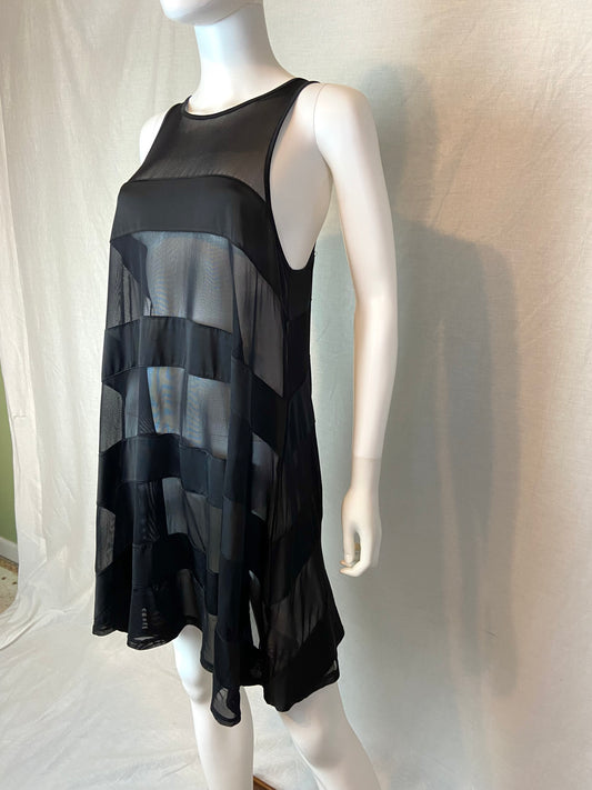 Black Sheer Striped Tank Tent Dress Coverup Lg