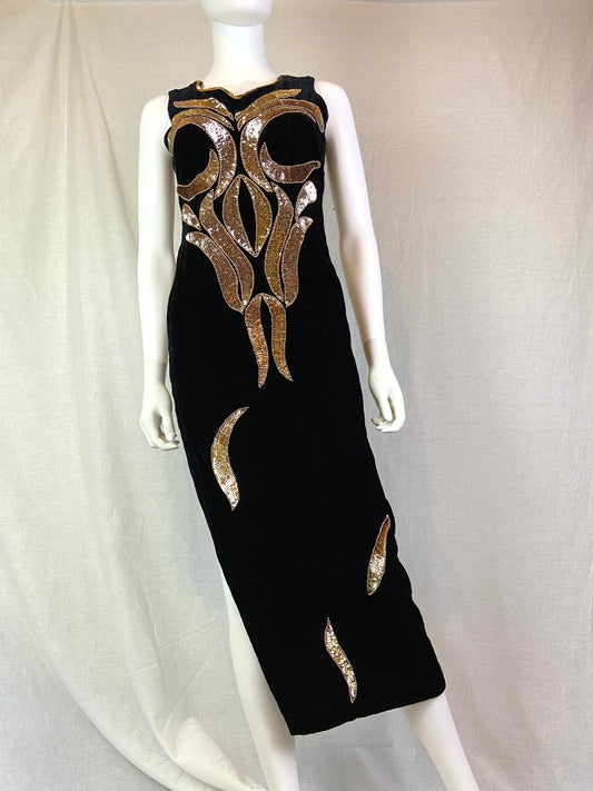 VINTAGE CUSTOM Blue White Black Sequin Mermaid Gown