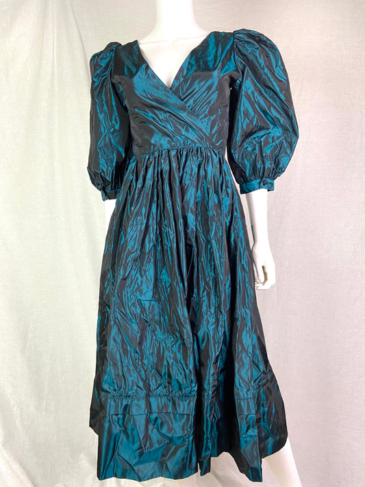 Vintage Laura Ashley Emerald Green Metallic Wrap Princess Gown Dress