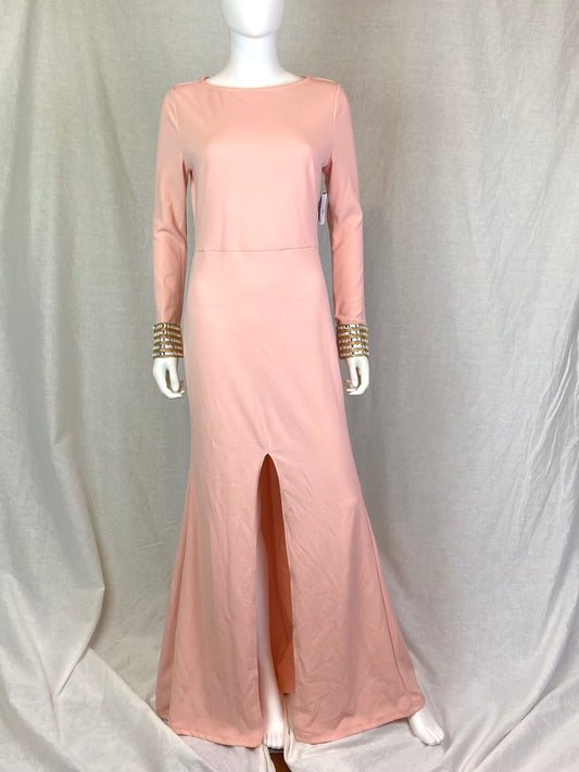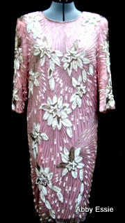 Rare Vintage Nina Couture Light Pink Sequined & Beaded Silk Deco Great Gatsby Flapper Gown Sz Medium