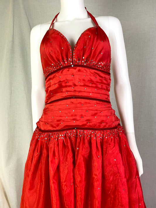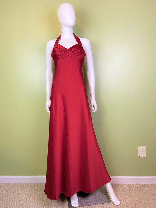 Calvin Klein Red Satin Halter Tuxedo Gown