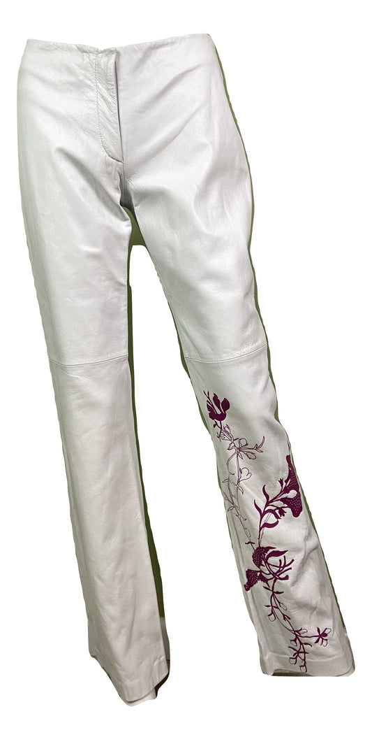 Vintage White Lambskin Leather Pink Graphic Print Pants