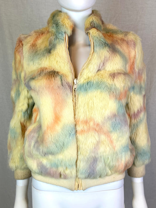 Vintage Comex Rainbow Tie Dye Fur Coat
