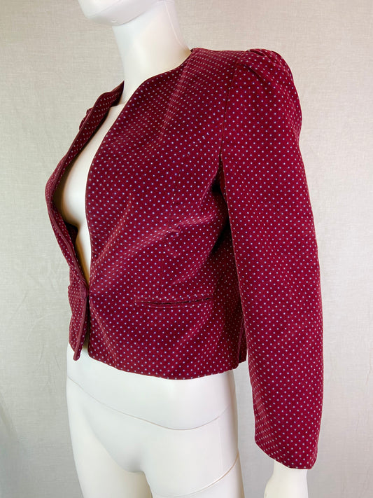 Vind De Casa Burgundy Red Velvet Polka Dot Jacket