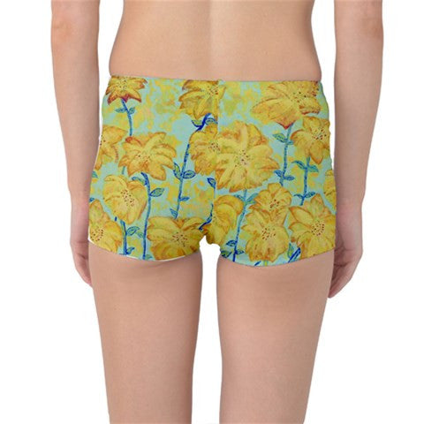 Suga Lane Retro Yellow Floral Fireworks Boyleg Bikini Bottom