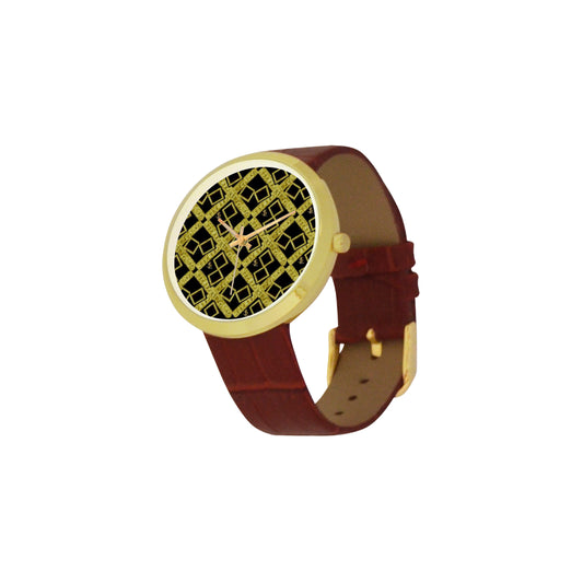logo gold black suga lane 3 mb Women's Golden Leather Strap Watch(Model 212)