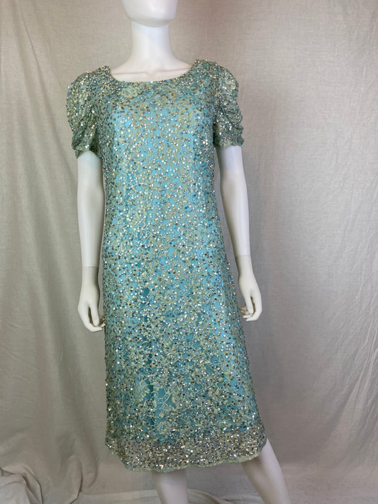 JS Collections Aqua Mint Blue Sequin Sheath Dress