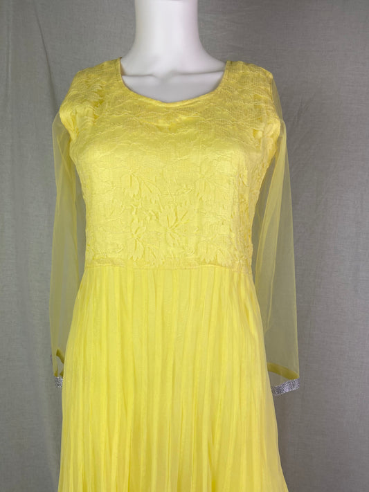 Indian Yellow Lace Sheer Pleated Dress