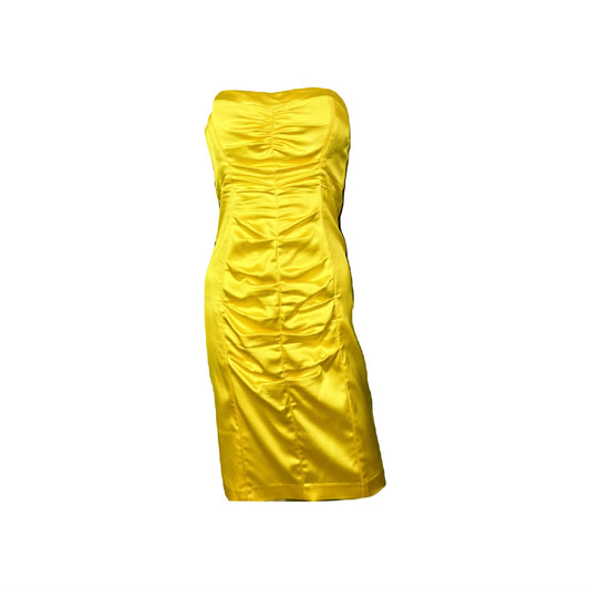 Cache Yellow Stretch Satin Ruche Corset Dress