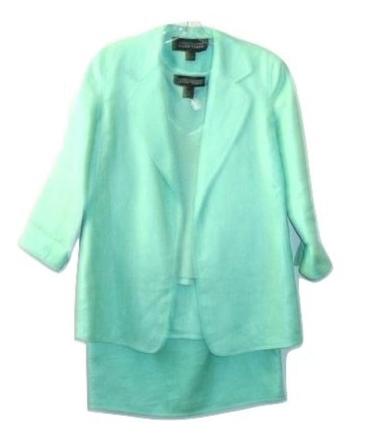Linda Allard Ellen Tracy 3 Pc Green Linen Skirt Suit Petite