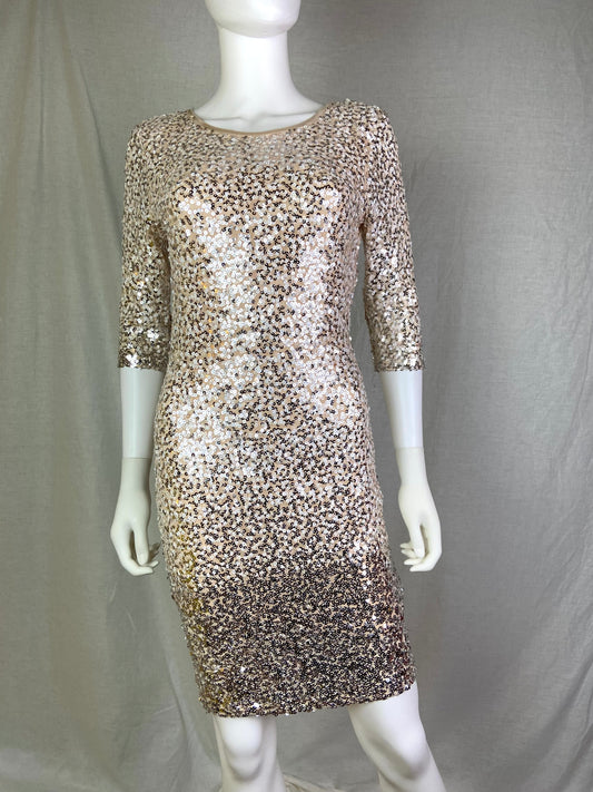 Crystal Doll Beige Champagne Ombré Sequin Stretch Coctail Dress NWT
