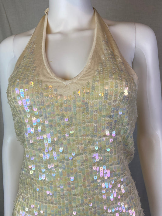 Laundry Cream White Sequin Knit Halter Tank