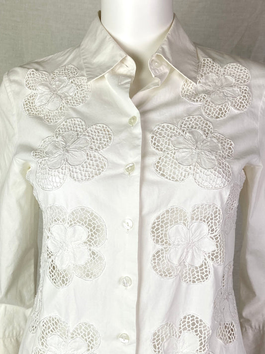Vintage ANNE Fontaine White Floral Lace Crochet Button Down Top