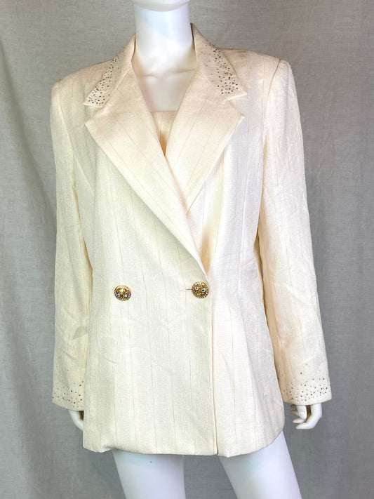 Lily & Taylor Cream White Striped Rhinestone Blazer Jacket
