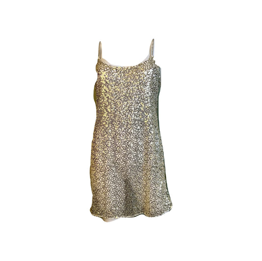 Sheer White Gold Sequin Stretch Cami Lingerie Mini Dress