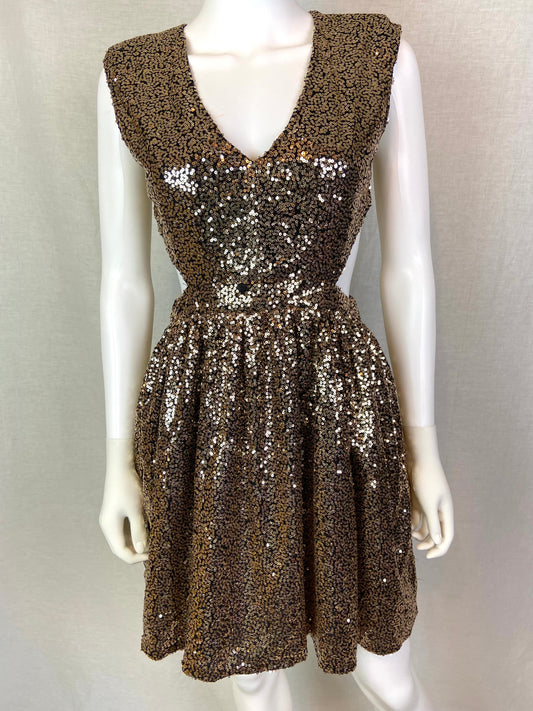 Gold Bronze Sequin Cut Out Dress