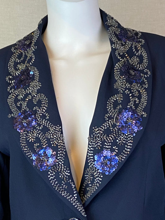 Scala Navy Blue Sequin Beaded Blazer