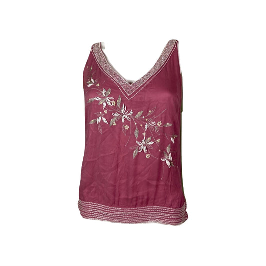 Pink Silk Beaded Sequin Tank Top