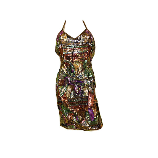 Vintage Fantasy Lisa Kane Sequin Silk Disco Cocktail Dress