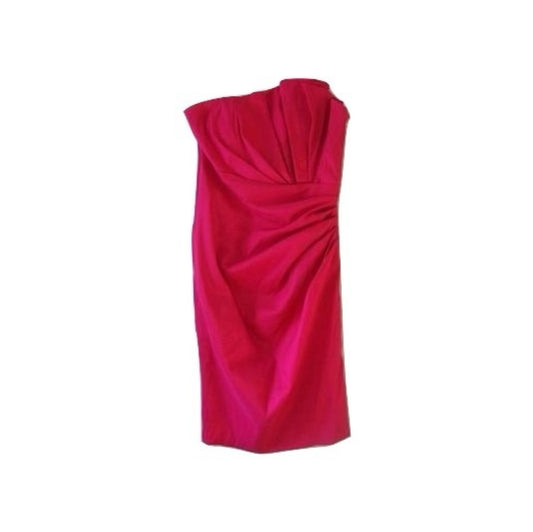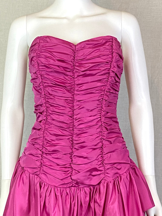 Vintage Positively ELLYN Hot Pink Satin Ruche Ruffle Dress