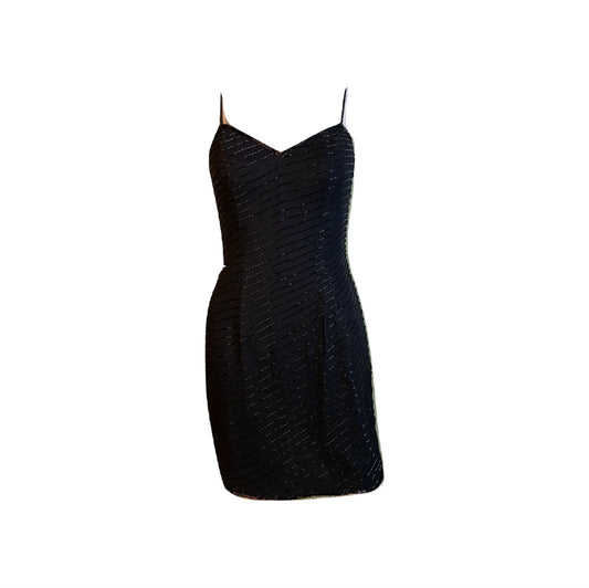Vintage Eve's Allure Black Sequin Silk Trophy Deco Gatsby Dress Small