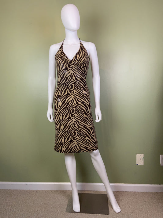 Vintage Brown Cheetah Print Sequin Stretch Wrap Dress