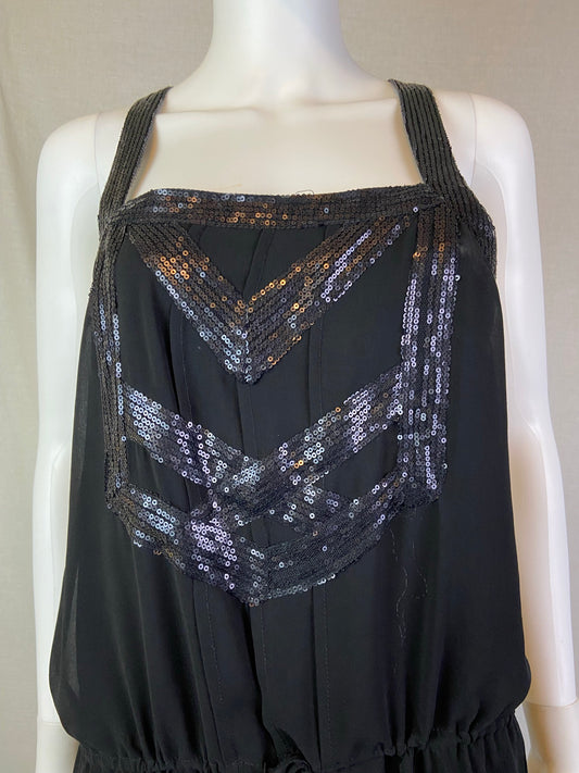 Vtg Black Sequined Beaded Silk Cocktail Flapper Great Gatsby Dress