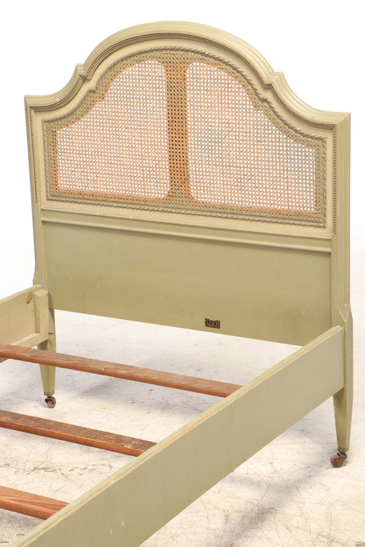 French Baroque Louis XVI Cane Green Painted Twin Bed