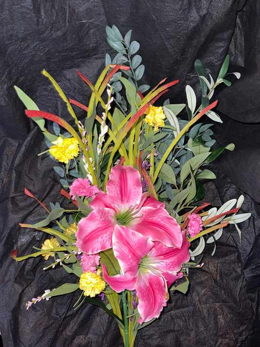 RENTAL FLOWERS BRIDAL BOUQUET LILIES PINK EUCALYPTUS