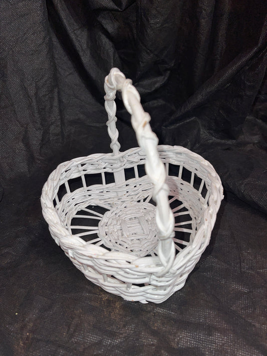 BASKET RENTAL VINTAGE SMALL WHITE HEART BASKET FLOWER GIRL WEDDING (Copy)