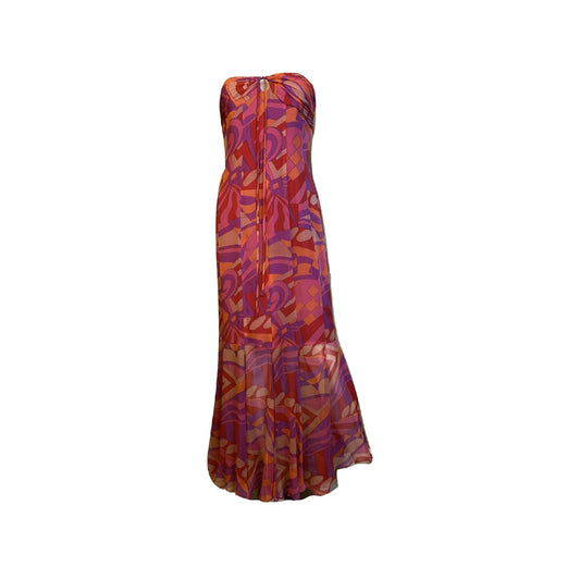 David Meister Pink Orange Strapless Bustier Silk Maxi Dress