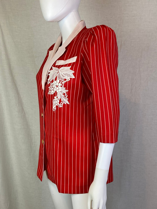 Vintage L’Officiel Red White Pinstriped 80s Career Blazer