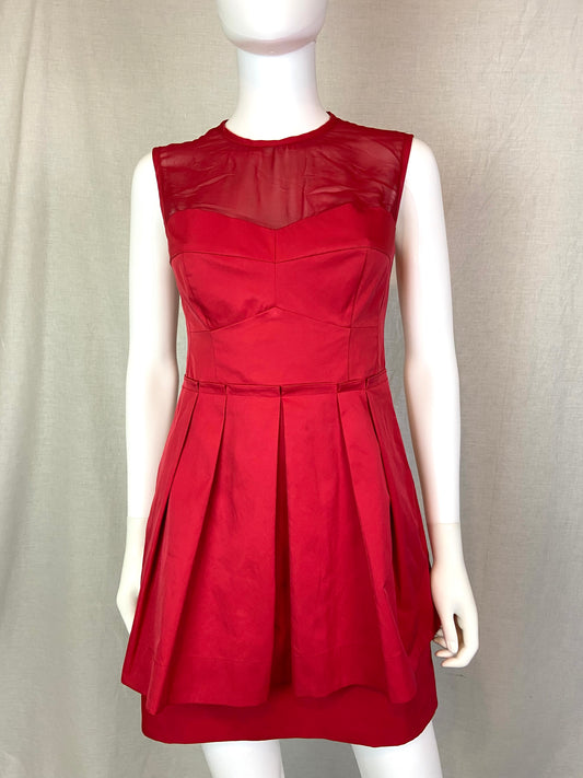 REBECCA TAYLOR Red Silk Dress W/ Flower Petals