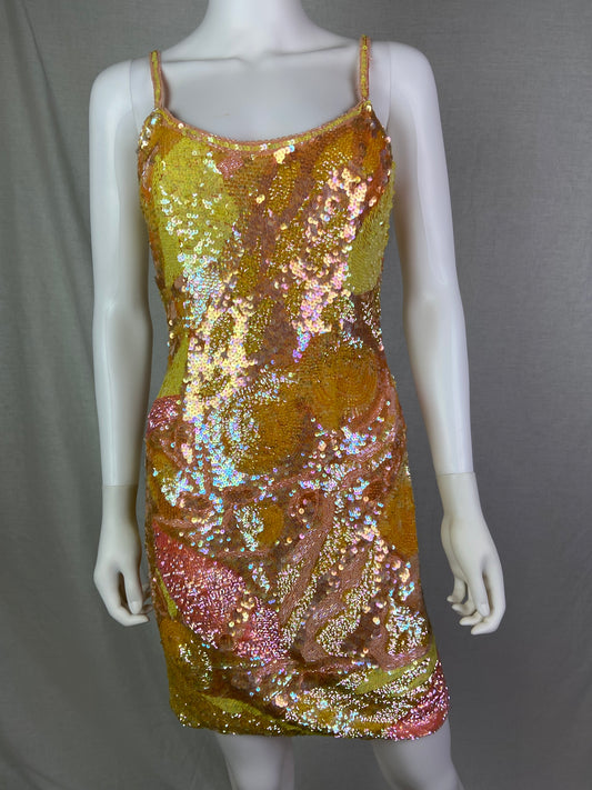 Vintage Niteline Pink Pastel Sequin Silk Cocktail Dress
