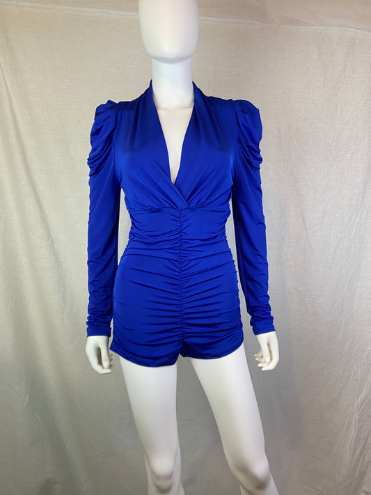Sabora Royal Blue Ruche Mini Shorts Romper