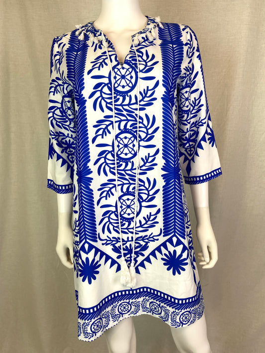 LAND’s END Blue Neon Geometric Sun Dress Medium 10-12