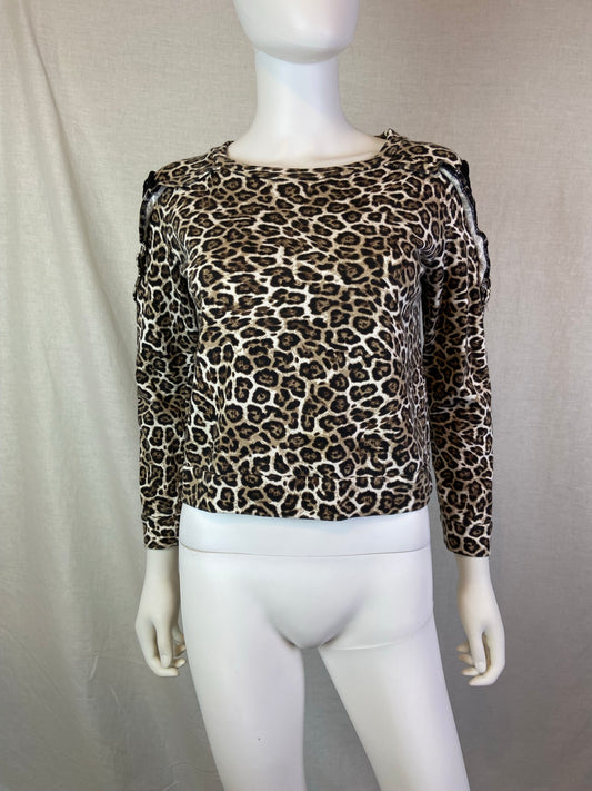 Tinsey Brown Tan Black Cheetah Lace Sweatshirt Top