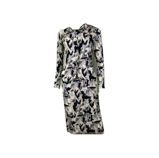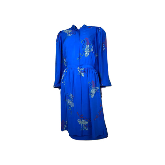 LANVIN Vintage Floral Royal Blue Silk Dress with Skirt