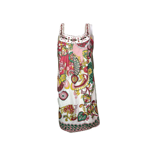 Nicole Miller Bejeweled Graphic Pink Green Silky Sheath Dress