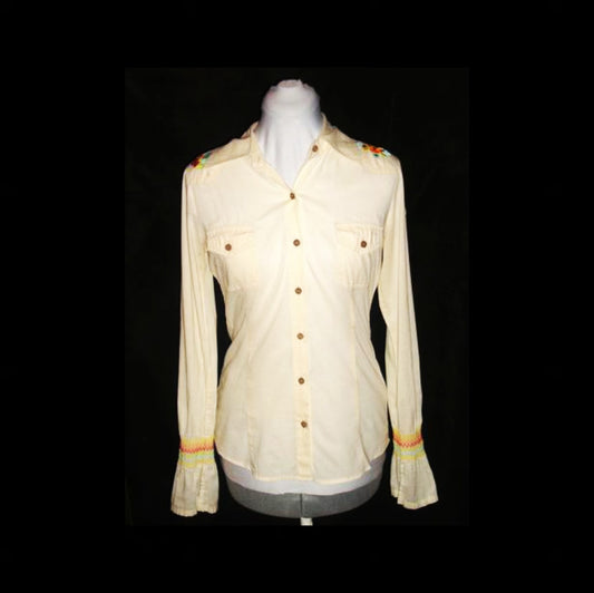Buffalo David Bitten White Cream Western Floral Blouse Embroidered Small