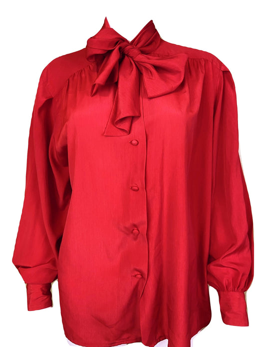 Vintage Red Kitten Bow Silky Blouson Sleeve Career Cocktail